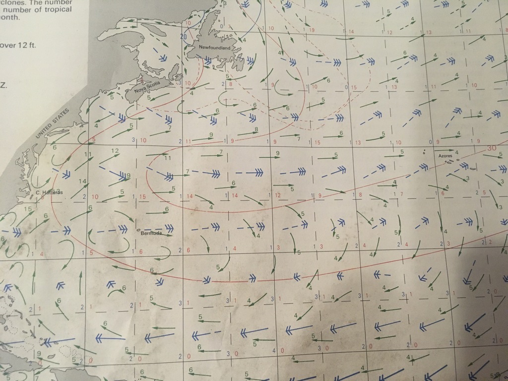 Concernant le choix de la navigation, je lis que certains privilégient de remonter plein nord depuis les Antilles vers les Bermudes pour prendre les vents portants et dominants Ouest (au risque de dépressions importantes...), d'autres préfères une route plus sur avec un cap plus orthodromique (au risque d'être plus souvent au près) : des avis ? (même si le choix est surtout dicté par la météo...)