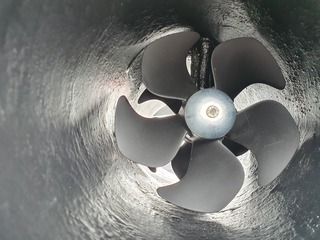 Vu le faible volume avant, le chantier me propose in propulseur en tunnel Sidepower 50 de 2,4 kw avec 50/62 kg de poussée dans un tunnel de 140 mm