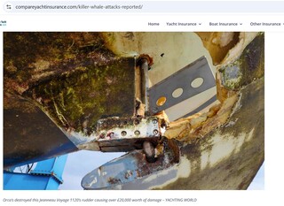 Sur le sujet et dans la mesure où le point est important (cela serait la première fois, au moins depuis 3-4 ans et sur ces côtes, que des orques s’en prennnent à des coques), j’aurais aimé en savoir plus. J’ai compris qu’une fois arraché le safran, les orques sont restées et “s’en sont pris à la coque”. Mais était ce simplement comme ils ont coutume à le faire toucher la coque en passant sous le bateau ou une attaque frontale avec intention de briser la coque (et avec quel résultat ? Est ce que le bateau a coulé à cause de la voie d’eau du tube de jaumiere ou à t’il été également fissuré à d’autres endroits de la coque?). Sauf à ce que les articles en aient parlé, ce que je ne crois pas, si le marin a qui s’est arrivé nous lit, son retour sera le bienvenu.