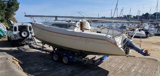je crois qu'il y a deux modeles de first 24 , un des annees 80 et un assez recent , donc des poids sans doute differents , quel est le poids du bateau equipe ?