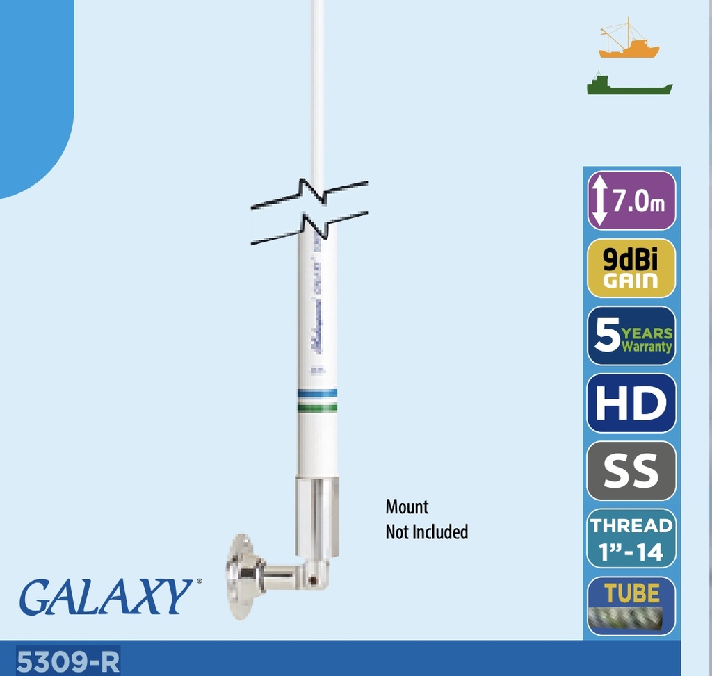 J'ai en prévision de la remplacer par une antenne 1/2 onde donc 7 mètres de long. La Shakespeare Galaxy 5309-R qui est installée sur tous les navires commerciaux de classe A