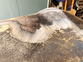 Les deux fibres étaient définitivement de trop gros diamètre pour tenir les courbures voulues et j'ai galéré avec le dosage de la résine, pour un résultat discutable qui a nécessité plusieurs reprises intégrales..._ (je passe sur ma méconnaissance de la différence avec et sans wax qui m'a amené à me poser de nombreuses questions !)_ Au moins, maintenant je sais ce qu'il ne faut pas faire ! ☺