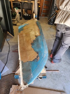 J'envisage de poncer jusqu'à la fibre sous la ligne de flottaison pour renforcer la bestiole et repartir sur des bases saines.