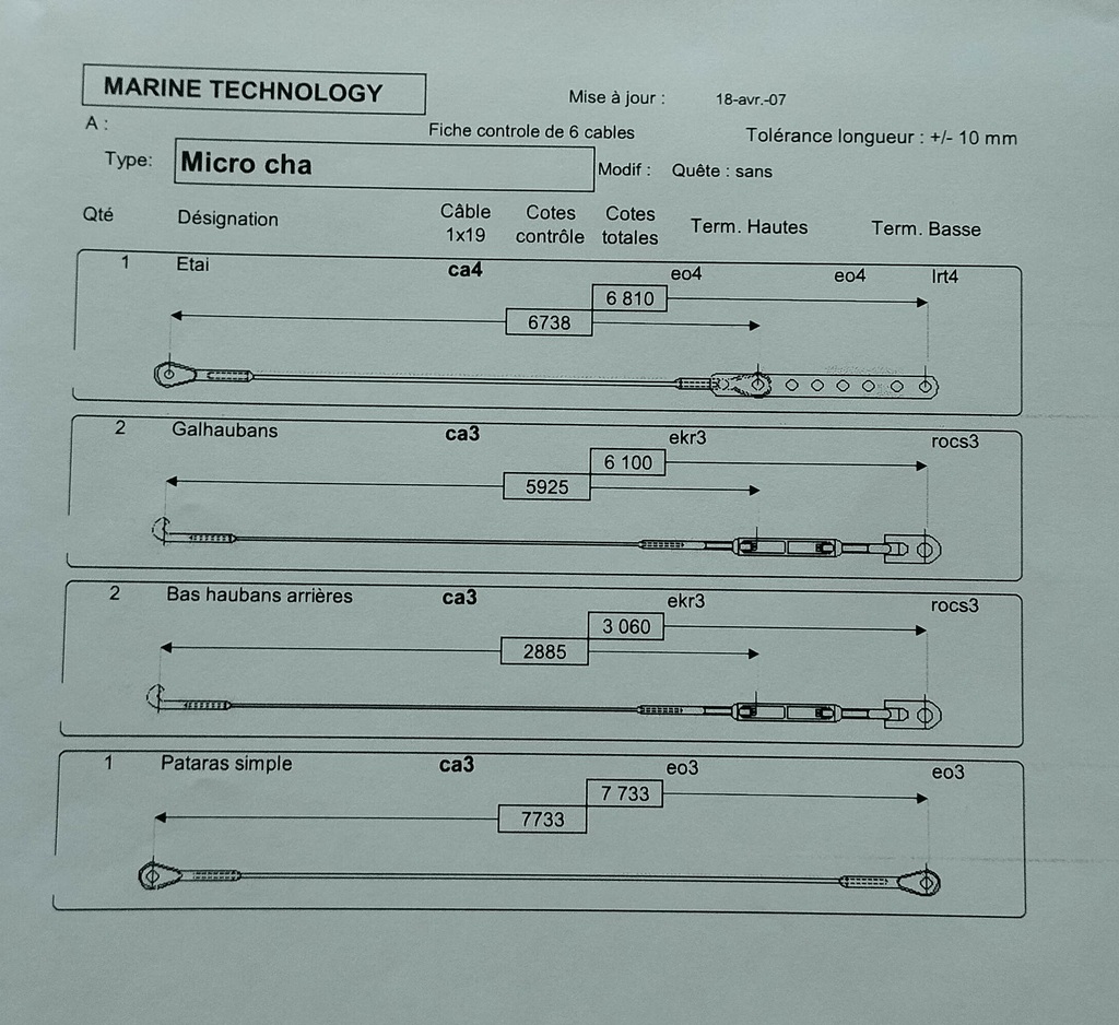 Pour information voici le plan des gréements dormants de micro challenger ( mat zspars 120)