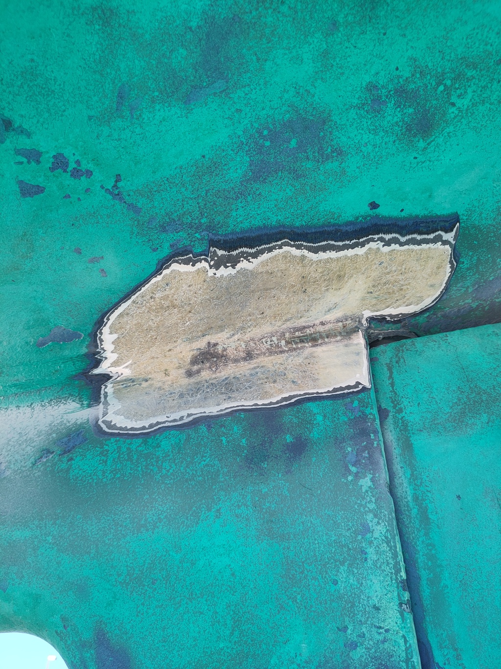 • Nous avons ensuite sorti le bateau de l’eau à Cariacou, renforcé par l’extérieur et l’intérieur (décapage des fissures à l’extérieur et ajout de tissu et renforcement de la varangue devant le skeg à l’intérieur ). Plus de problème après cela et nous avons réaliser un tour du monde.