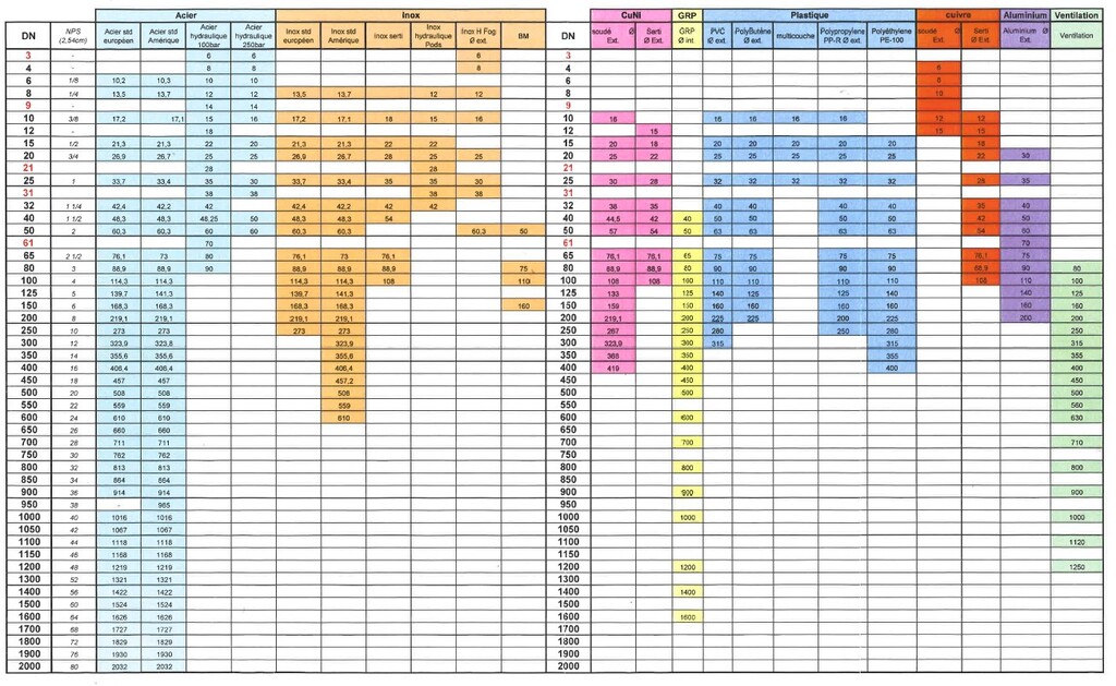 Hi, en PJ un tableau de correspondance DN TU Matière, si cela peut servir ...