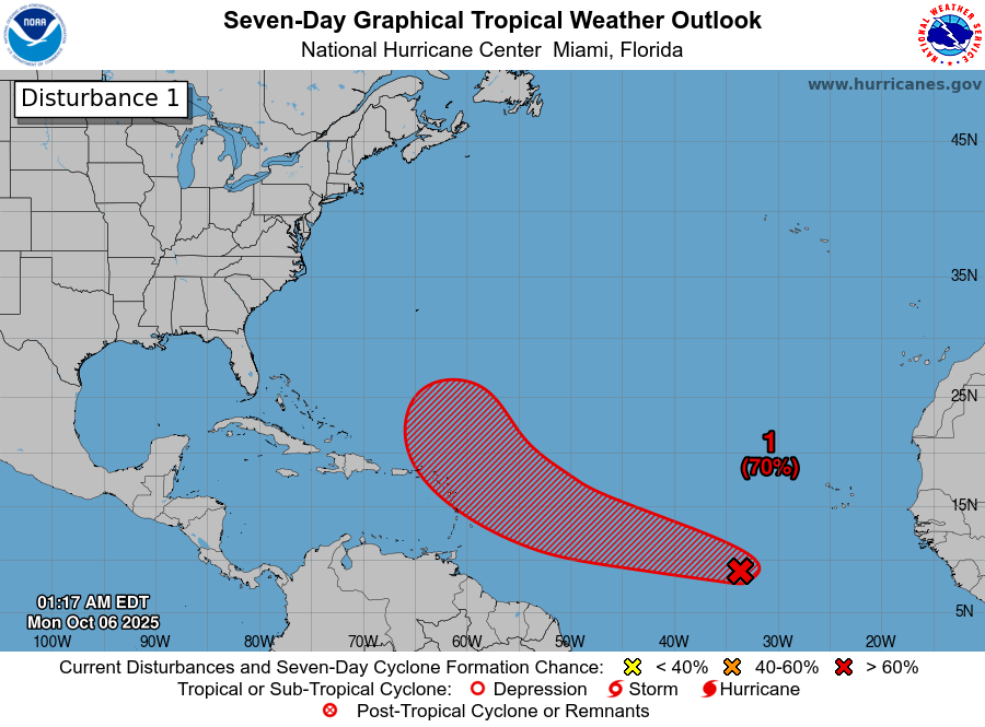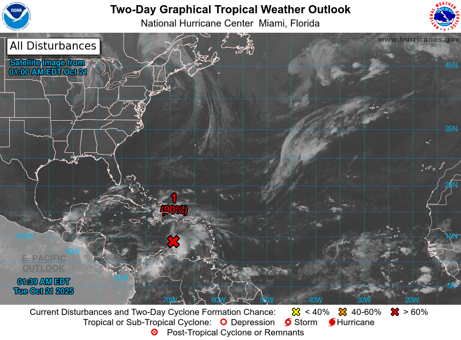 La "disturbance" a ralenti et menace de devenir "Melissa" en traversant la mer Caraïbe.