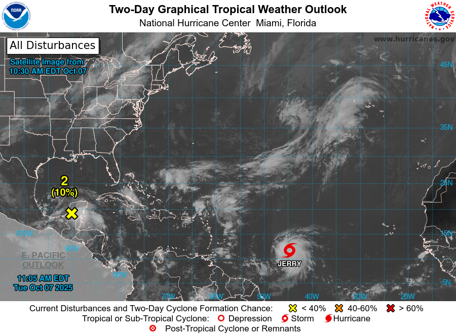 La photo satellite de ce matin... Le centre de Jerry est au Nord, mais on dirait qu'il y en a eu pour tout le monde !