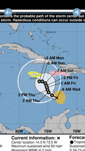 Fusionner ? Le NHC donne deux parcours l'un derrière l'autre, et le tout contournerait les Bermudes... mais qu'en sera-t-il en vrai ? Les Bermudes sont en alerte en tout cas et les commentaires disent qu'ils ont l'habitude. C'est sûr que les constructions de l'habitat et des bâtiments publics sont beaucoup plus sérieuses que sur les petites îles de l'arc antillais, comme Carriacou par exemple... Les Bermudes, c'est riche !