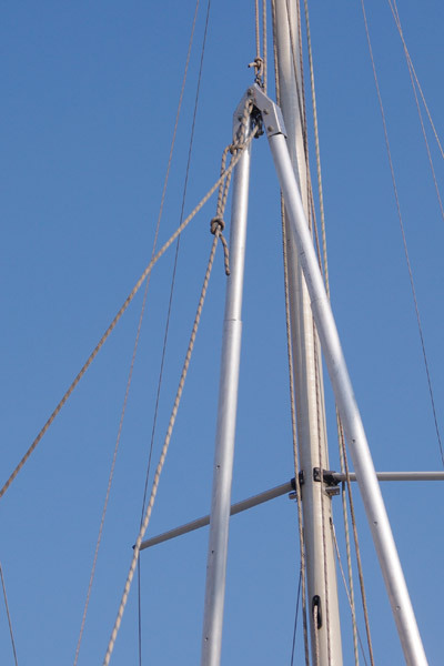 on voit bien sur cette photo que le mat est particulièrement haut pour cette taille de bateau