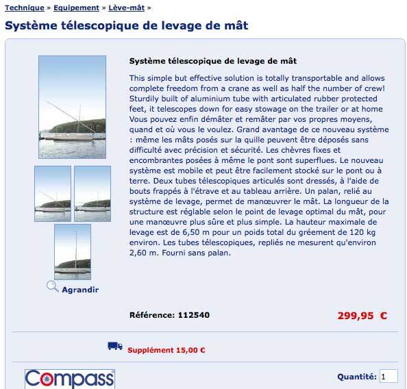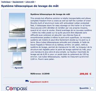 J'ai utilisé une chèvre de mâtage Compass (photo) sur un Challenger GT26, puis une chèvre avec de gros bambous liés (2x3) pour le même mât. En solo.