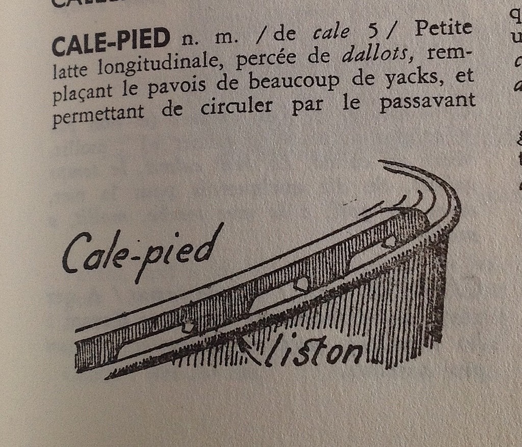 Bonjour, comme dit les rebords sont des cales pieds qui sont obligatoires en catégorie À et B dans le cadre de la prévention des chutes à la mer