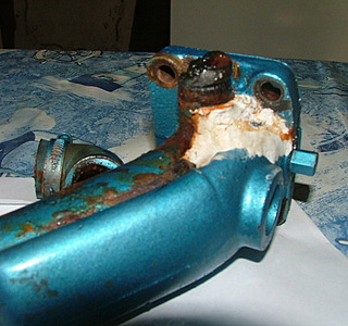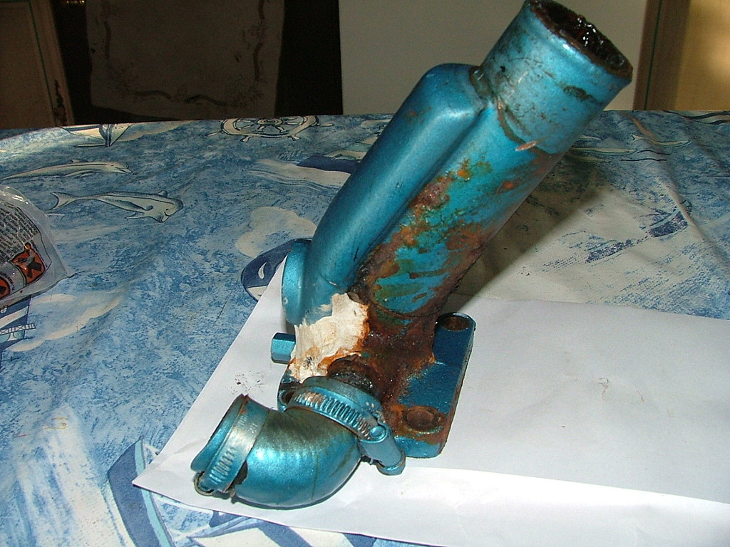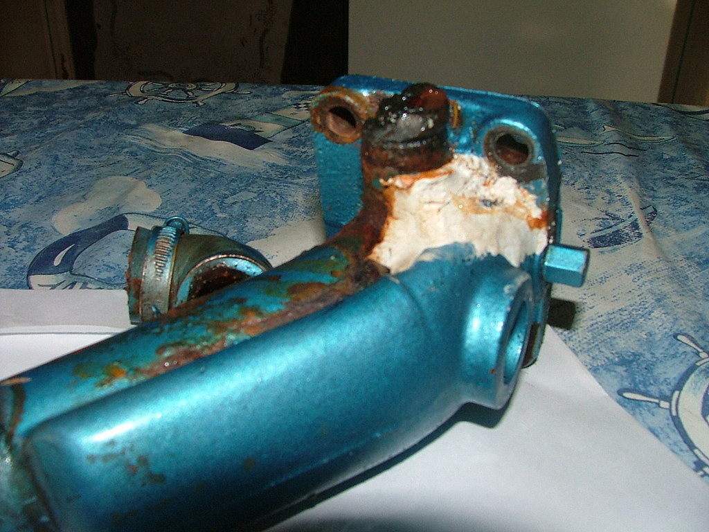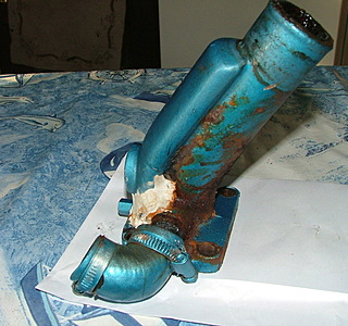 démonter le coude et voir l'état de la culasse.....quand le coude est attaquée, cela doit être bien bouchée au niveau de la culasse.