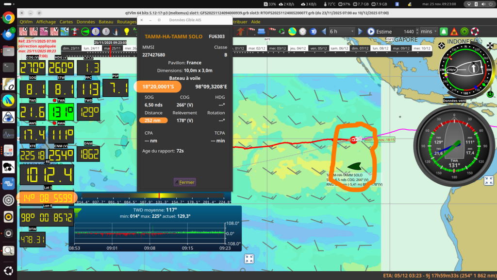 Les coordonnées de la position de mon bateau envoyées par AIS sont erronées en latitude. Mon bateau serait à 252Nm dans le sud...