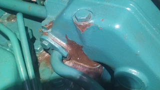 En pièce jointe une photo de mon coude, on voit bien que l'eau de mer a commencé à faire son effet. Je vais refaire tous les joints et nettoyer le coude dans un premier temps.