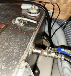Sur le réservoir de gasoil de mon oceanis 40cc il y a un tuyau colmaté, soudé au réservoir (cerclé en rouge sur la photo).