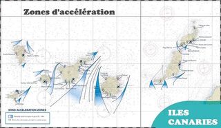 La carte des zones d'accélération, qui correspond à une situation "normale" de départ d'alizées nord/nord-est est indispensable. Je la remets ci-dessous.