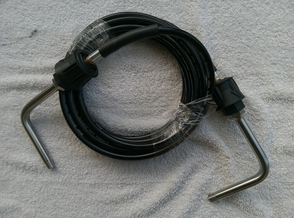 si vous devez changer votre tuyau HP de dessalinisateur il y a disponible des embouts custom en inox 316 qui se montent sur les raccords rapides KARCHER au pas de 1/4 pour rentrer dans les embouts standards des porte-membranes et en sotie HP des pompes.les tuyaux karcher sont dispo en diverses longueurs sur le net, j'utilise ce systeme sur le dessal 16l équipé de la PUMTEC 107ss qui sur recommandation du fabricant doit etre equipé d'un amortisseur de pulsation un tuyau KARCHER de 5 m( minimum) est utilisé à cet effet car + souple que les tuyau HP de 400 bars classiques.