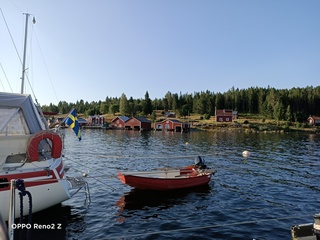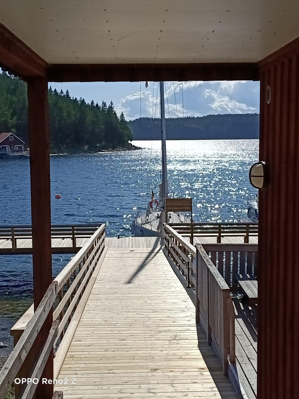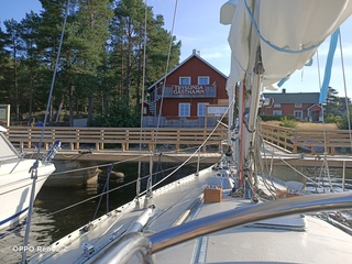 Petit port taille humaine, très abrité (espèce de lagon), installations (sanitaire, sauna, cuisine) tout est en bois, prix (30 EUR la nuit).