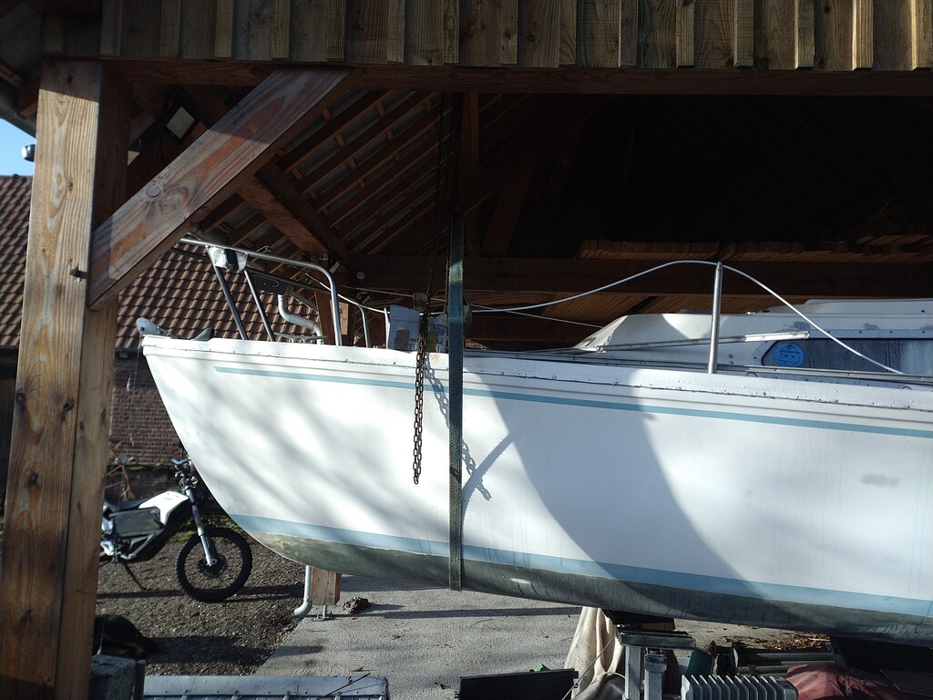 bon j'ai du nettoyage, quelques bricole a refaire dessus, il n'a pas navigué depuis au moins 10 ans mais il était hors de l'eau et dehors sous une demis bâche sur son ber