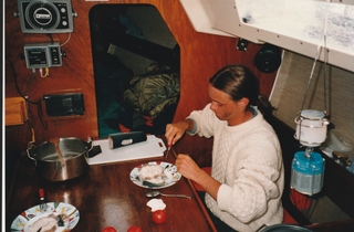 Oui, bien que je doive le dire au passé : j'ai toujours cuisiné à bord, quelles que soient les conditions, j'avais la chance de ne pas avoir le mal de mer.