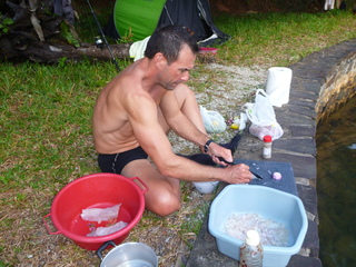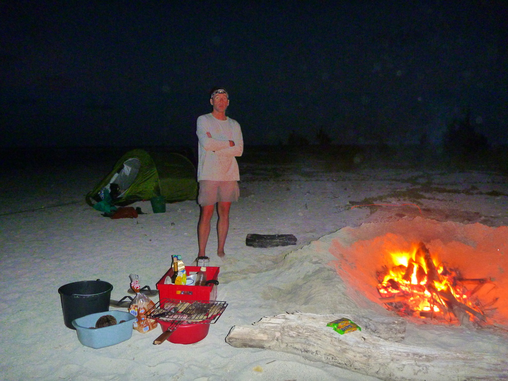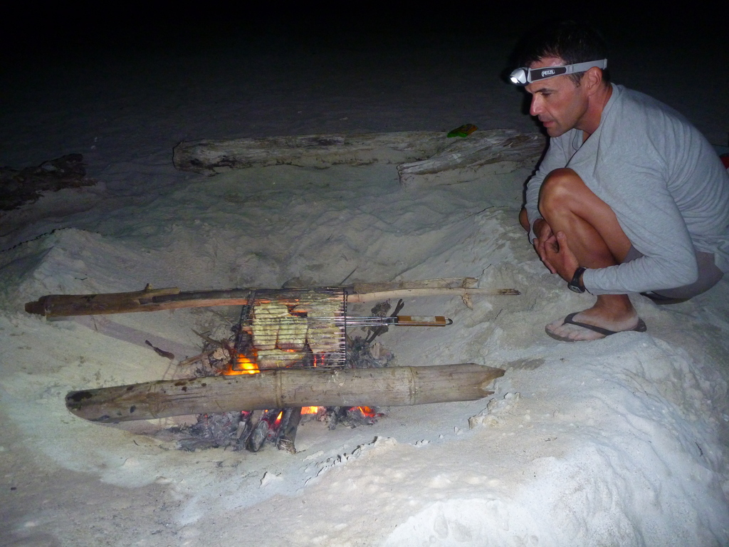 C'est le soir qu'on se faisait le gros repas sur une plage, toujours déserte. Une grosse plâtrée de ris ou de pates, avec plusieurs kilogrammes de poisson frais (Thazard, mérou, capitaine, coryphène, carangue, thon, etc.)