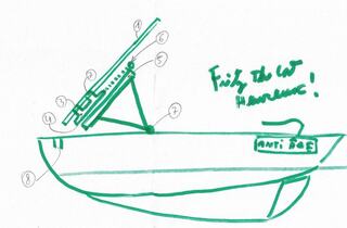 bon, et une bonne planche d'un metre par 0,50 en travers de l'étrave sanglée au pont? et un entonnoir xxl pour viser le trou 😄
