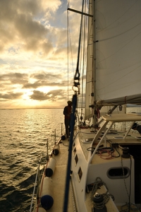 Deux que j'aime bien, ambiance mer d'Iroise, un coucher de soleil à Ouessant au mouillage dans la baie de lampaul.