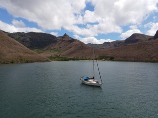 Bien vu !! c'est bien la baie de Hakatea au sud ouest de Nuku Hiva, ca fait du bien de trouver une eau calme! depuis trois mois ca roule beaucoup, nous avons quitté le mouillage de Taiohae car trop rouleur,